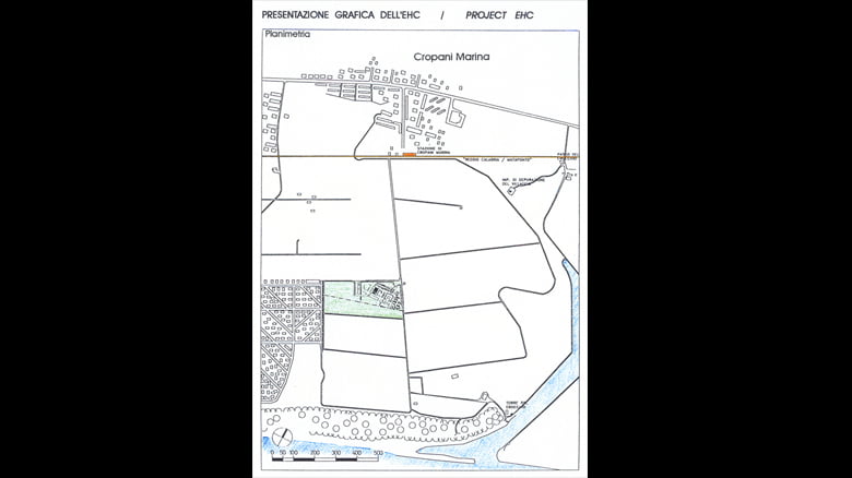 L’EHC avrebbe dovuto sorgere su un terreno di cinque ettari all’interno di una superficie più vasta (80 ettari) costituita per lo più da agrumeti e sito a poche centinaia di metri dal mare e a pochi chilometri dalla montagna. Le scelte architettoniche e urbanistiche per la sua realizzazione erano: accessibilità, flessibilità, espansibilità, convertibilità. Altro aspetto importante, il concepimento della struttura secondo caratteristiche architettoniche bioclimatiche che avrebbero consentito di sfruttare i fattori ambientali.