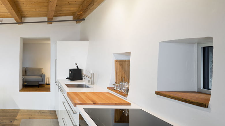 L’intervento di ristrutturazione ha conservato e valorizzato la costruzione originale, liberandola dagli annessi che sono stati aggiunti negli anni. Procedendo dal basso verso l’alto e sempre per sottrazione, si è ripristinato l’originale volume della costruzione con i caratteristici ballatoi e i locali collegati da una scala esterna. L’edifcio non era fornito di riscaldamento e tale è rimasto, con l’eccezione dei servizi, ora dotati di caminetti, che ne rendono particolare l’atmosfera.